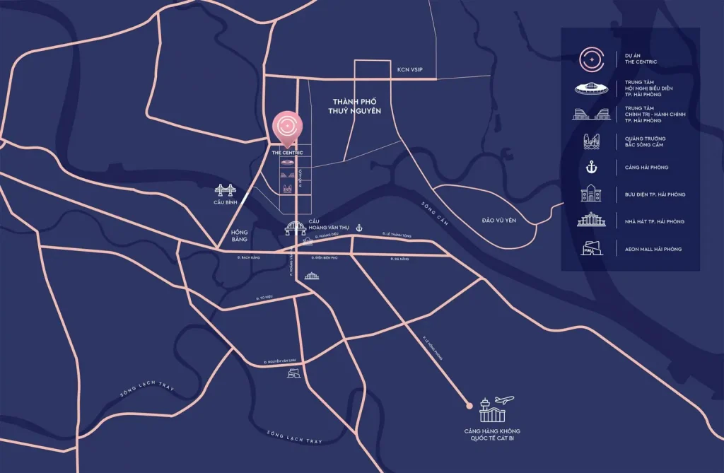 Dự án The Centric sở hữu vị trí đắc địa tại trung tâm hành chính mới huyện Thuỷ Nguyên, trên địa phận xã Tân Dương, huyện Thủy Nguyên, TP Hải Phòng với xung quanh là hệ thống hạ tầng giao thông đã phát triển đồng bộ, hiện đại, dễ dàng kết nối tới các khu vực trọng yếu của Hải Phòng như 5 phút để tới Cầu Hoàng Văn Thụ, 10 phút để tới Nhà hát lớn Hải Phòng, 20 phút để tới AEON Mall Hải Phòng và Cảng Hàng không Quốc tế Cát Bi…