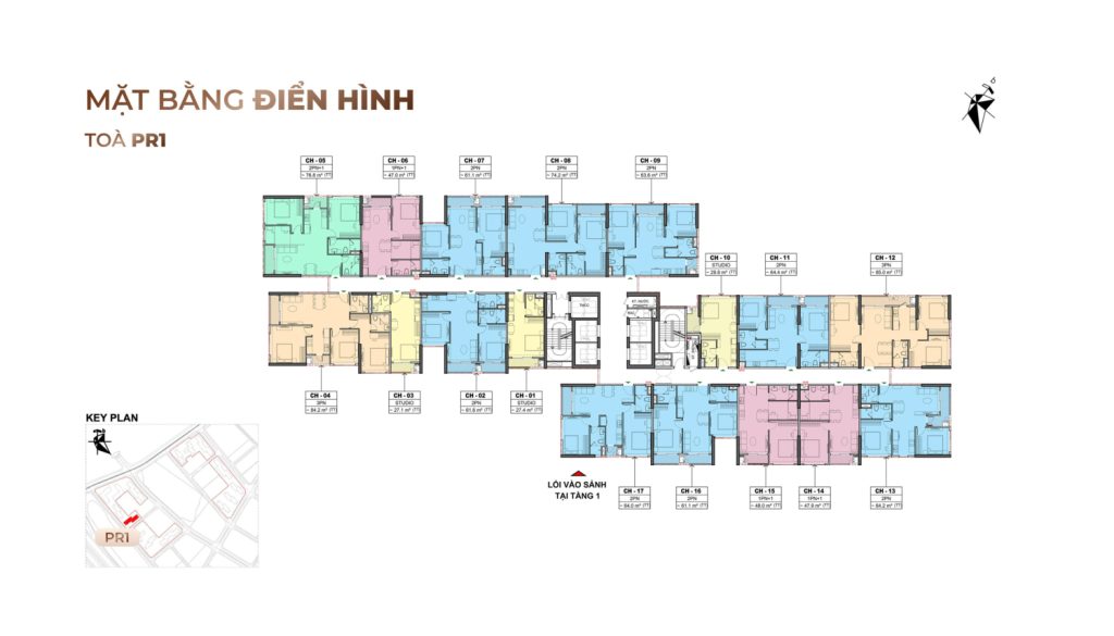 - Quy mô: 5 toà PR1,2,3,4,5 cao 26 tầng